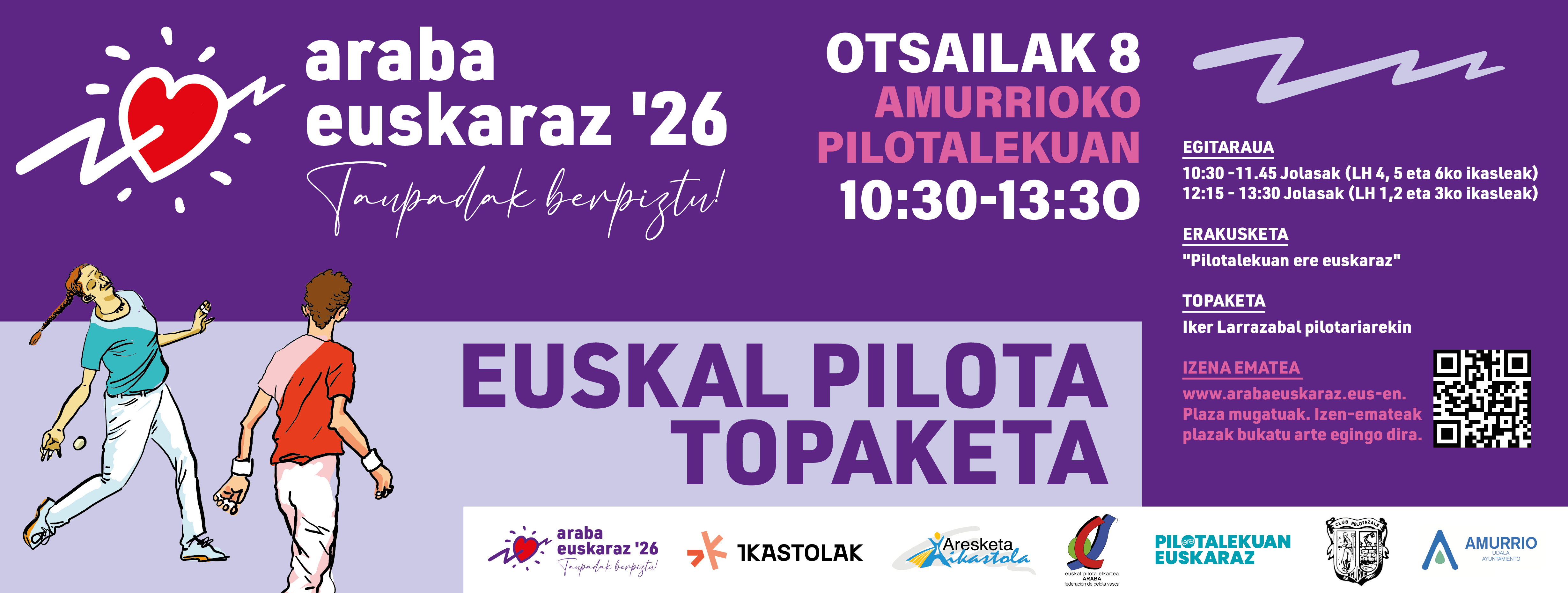Araba Euskaraz´26 ekimenaren barruan, otsailaren 8an, Amurrioko Udal Pilotalekuan, Araba Euskaraz´26 Euskal Pilota Topaketa ospatuko da.
