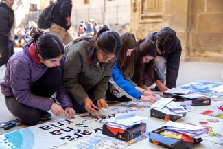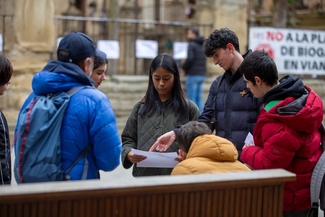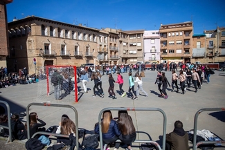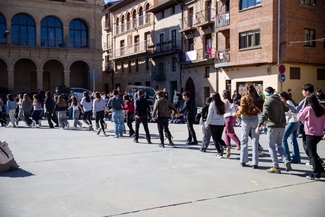 Bazkalostean, giro ludiko eta parte‑hartzailea nagusitu da: bingo musikatuak eta dinamika ezberdinek batu dituzte San Pedro elizaren inguruan bildu diren gazteak, euskal musika lagun. Arratsaldean, ikuskizun ibiltaria izan da Vianako kaleetan barna: musikaren laguntzaz, hainbat geldialdi egin dira herriko gune ezberdinetan, eta ikasleek eurek prestatutako emanaldiek hartu dute protagonismoa.
