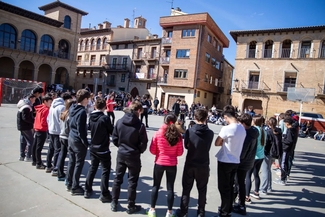 Goizean goiz ekin diote egunak, Foru enparantzan egindako harrerarekin. Han azaldu zaie parte hartzaileei egunaren egitura, eta taldetan banatu dituzte. Ondoren, bi jarduera nagusi txandakatuz aritu dira: talde batek Kike Amonarrizekin solasaldia izan du, euskararen egoeraz, mugaldeko errealitateaz eta ikastolen jaien zentzu historiko eta sozialaz sakontzeko; beste taldeak, bitartean, orientazio‑jolas formatuan antolatutako ibilbide ludiko baten bidez ezagutu du Viana, herriko kaleetan zehar erronka eta galderen bidez osatu beharreko puzzle baten piezak bilduz. Gero, taldeek alderantziz egin dituzte jarduerak, guztiek bi esperientziak bizi ahal izateko.