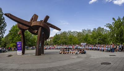 AMURRIO, 2026ko apirilaren 22a.- Gaur goizean, Amurrioko Juan Urrutia parkeko GUK eskulturaren aurrean, 2026ko Araba Euskaraz ekimenerako prestatutako abestia aurkeztu du Aresketa Ikastolak: "Taupadak berpiztu!". Aresketa Ikastolako ordezkariak eta kantuaren egileak, Igon Olaguenaga (ikasle ohia eta egungo langilea) eta Txiki Lora (ikastolako aita), protagonista izan dira ekitaldian. Ikastolako ikasleek, berriz, abestiarako propio prestaturiko koreografia dantzatuz, euskarak eta euskal kulturak pairatzen duten egoeraren aurrean taupadak berpizteko beharraren deiadarra luzatu dute.